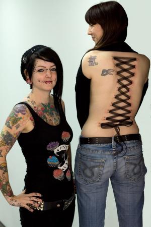 Judith Ashton-Sparkles, 35, an apprentice body piercer, whose back Laura corset-pierced, says reactions tend to be polarised.